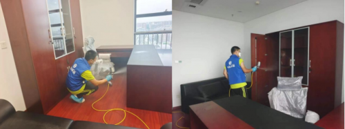 施工第3道工序:對(duì)細(xì)小家具、抽屜、床墊、木制鑲嵌柜子進(jìn)行除味工作,確保異味明顯降低,無(wú)刺激異味(人員可以正常進(jìn)出)。