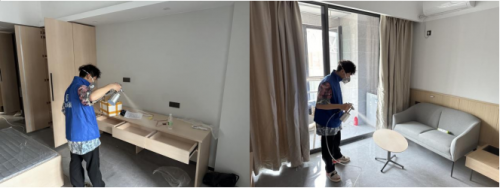 施工第3道工序:對細小家具、抽屜、床墊、木制鑲嵌柜子進行除味工作,確保異味明顯降低,無刺激異味(人員可以正常進出)。